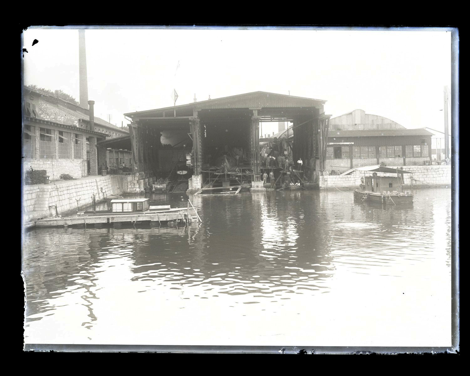 Scalo per motoscafi presso il silurificio Whitehead di Fiume con operai