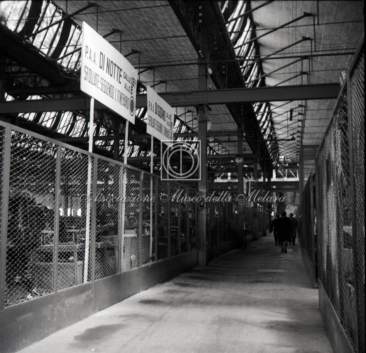 Tabella con indicazioni sui percorsi di sfollamento dentro capannone