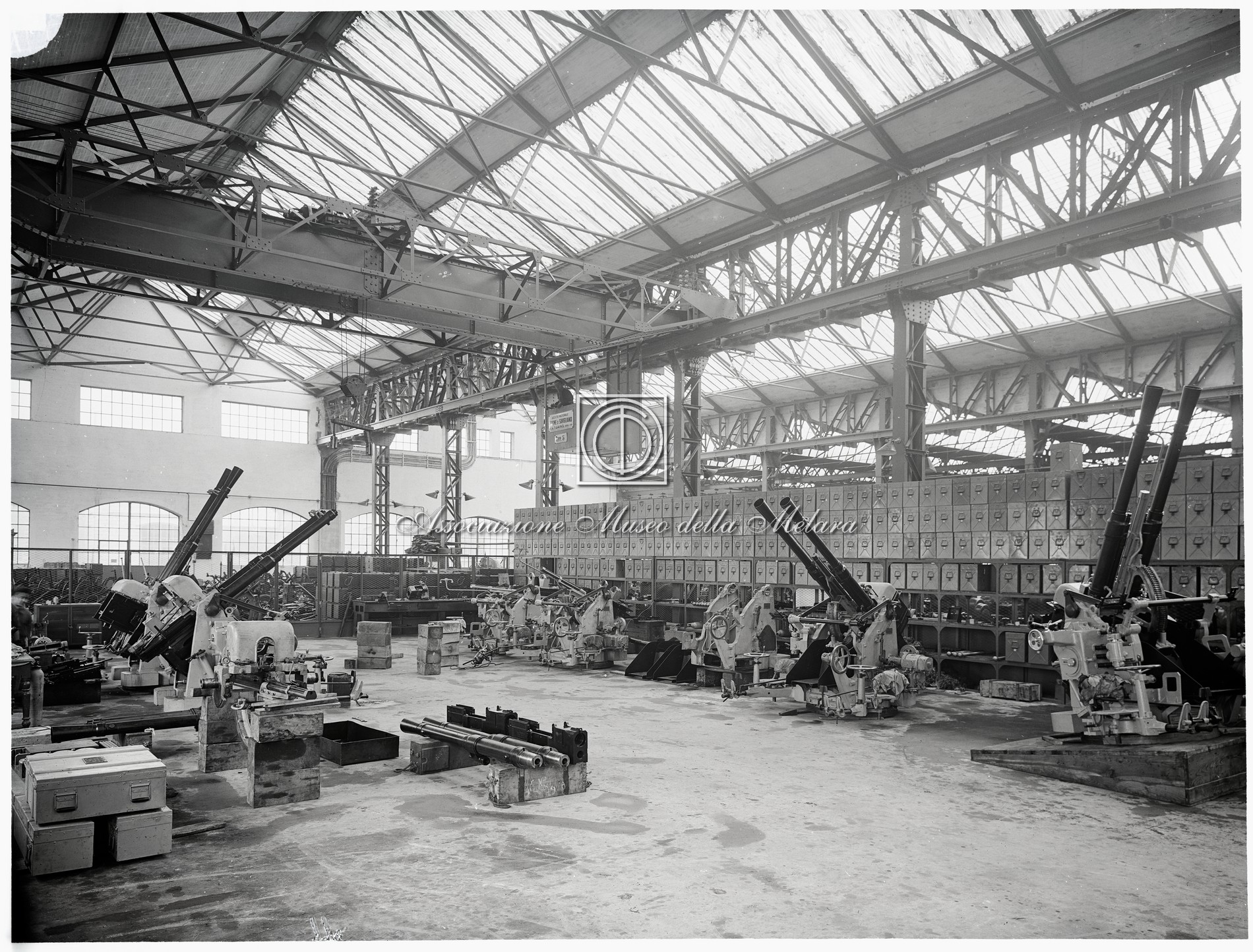Interno dello stabilimento. Reparto con linea di tiro, prove piccoli calibri