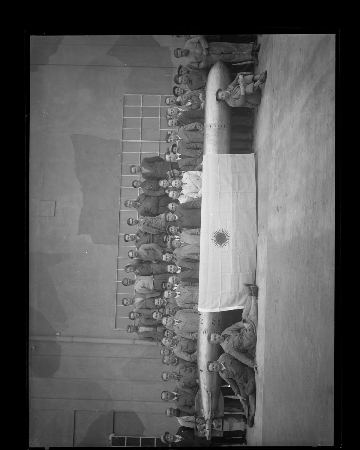 Personale del silurificio Whitehead in posa di fronte al siluro per la Marina Argentina