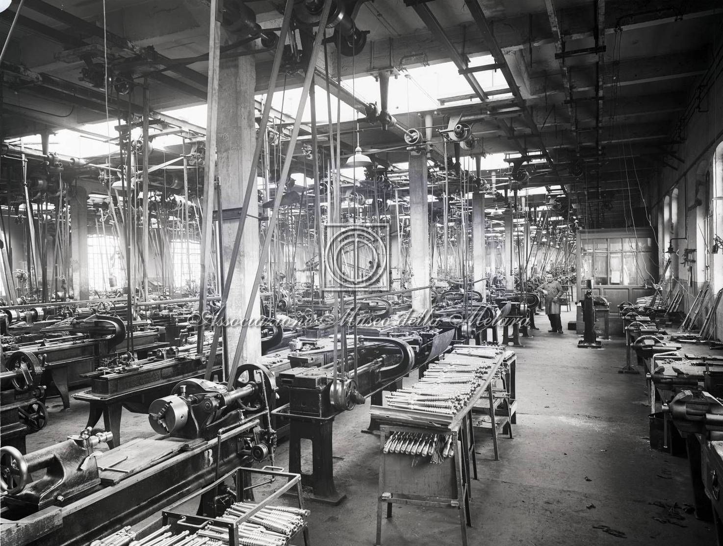 - Vecchio Stabilimento. Reparto macchine con operaio al lavoro