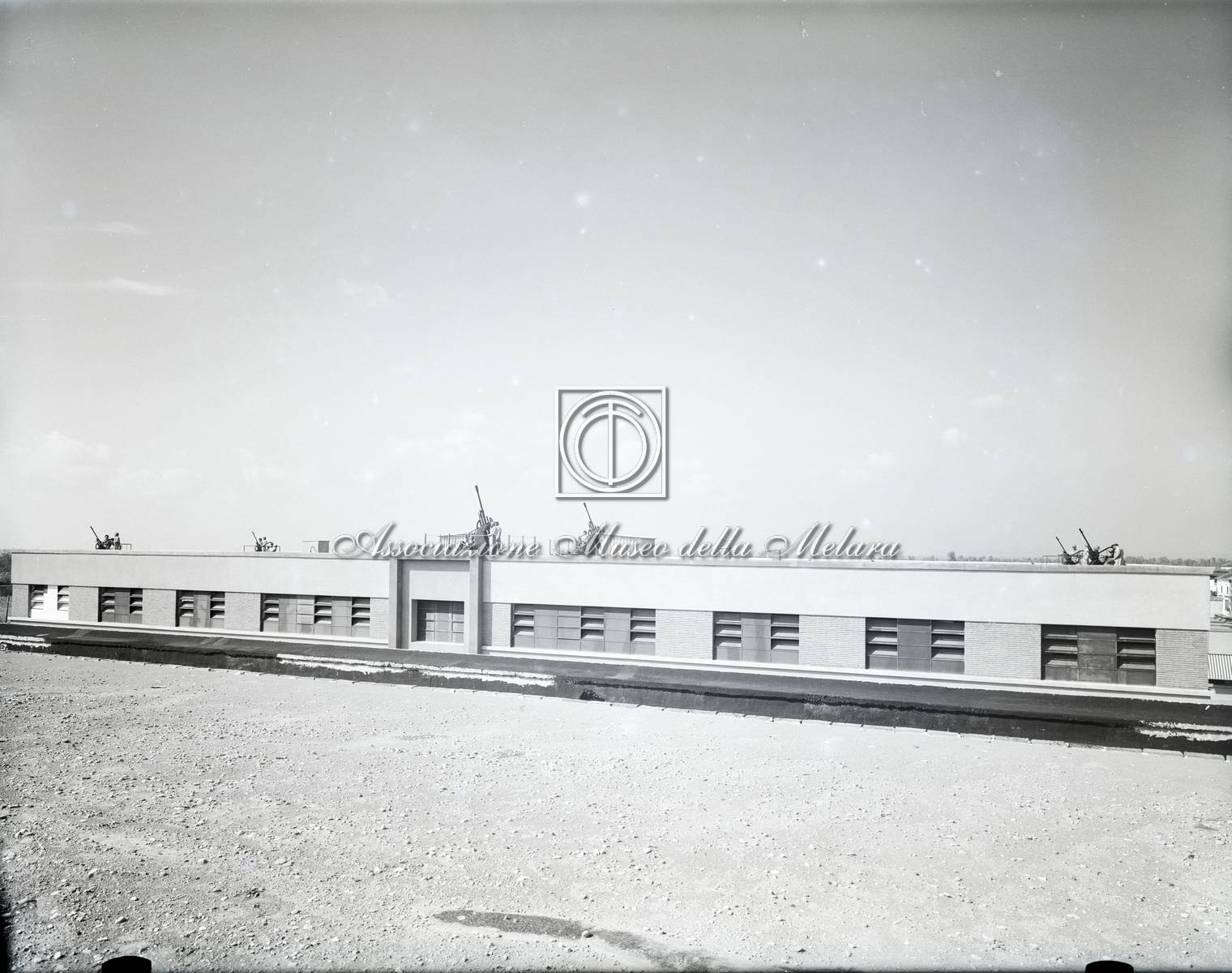 Part of Vista della palazzina durante le prove di difesa contraerea